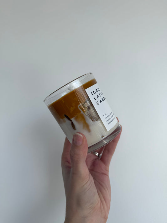 Ice Coffee Candle 9 oz | Iced Latte Coffee Scented Handmade Candle with Ice Cube Design